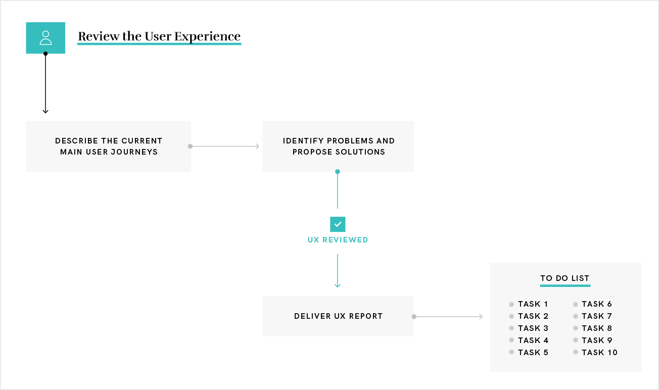 The next step is reviewing the user experience (UX). This is where the user journeys come in handy.